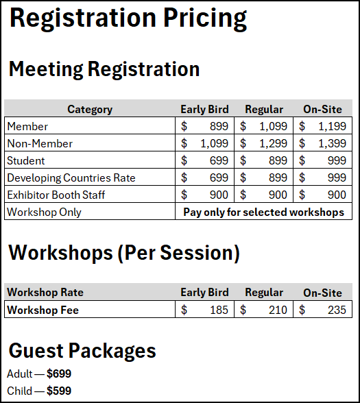 Early Bird Rate: May 19-July 14, 2026 Standard Rate: July 15-September 8, 2026 Onsite Rate: Begins September 9, 2026